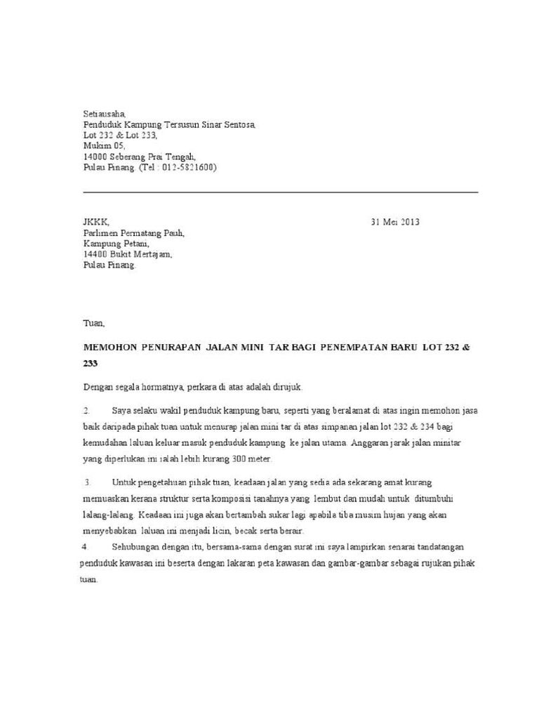 Ketua Kampung Contoh Surat Permohonan Jalan Kampung.
