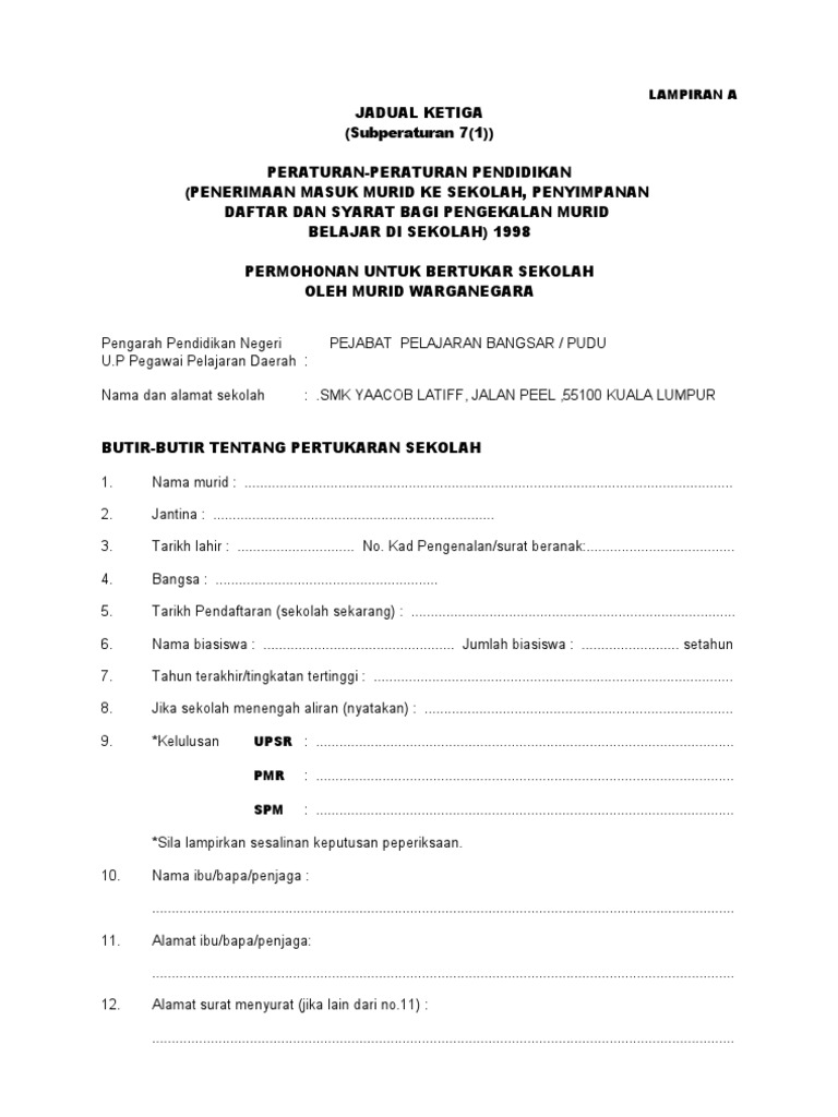 Contoh surat rasmi rayuan pertukaran sekolah rendah anak via.