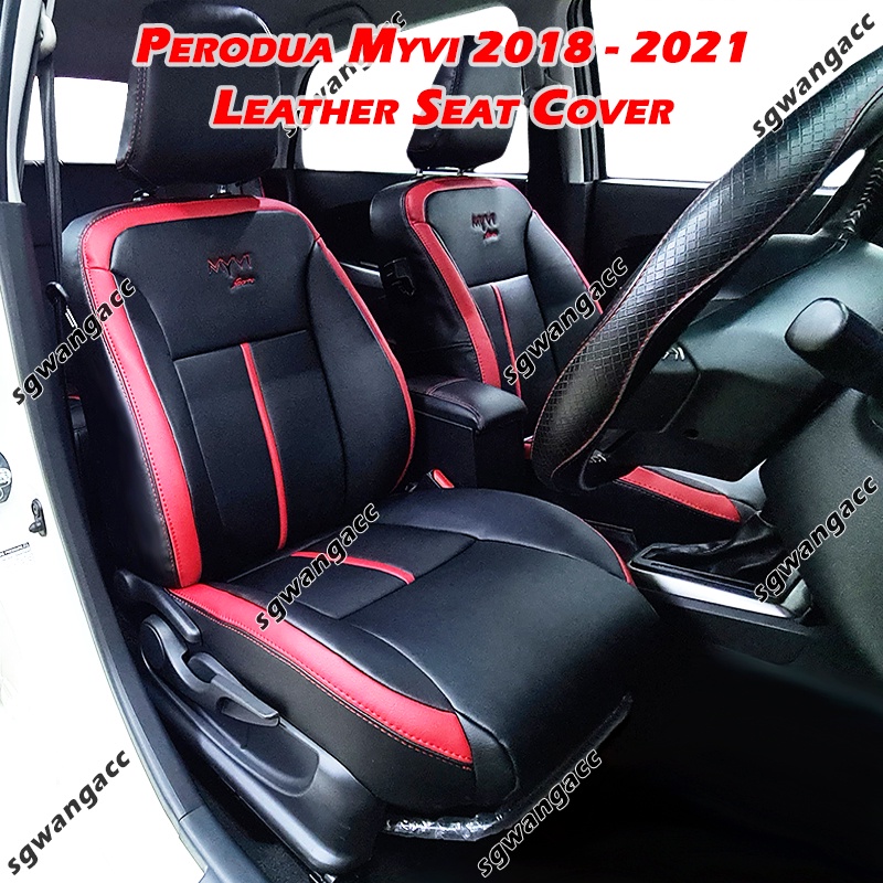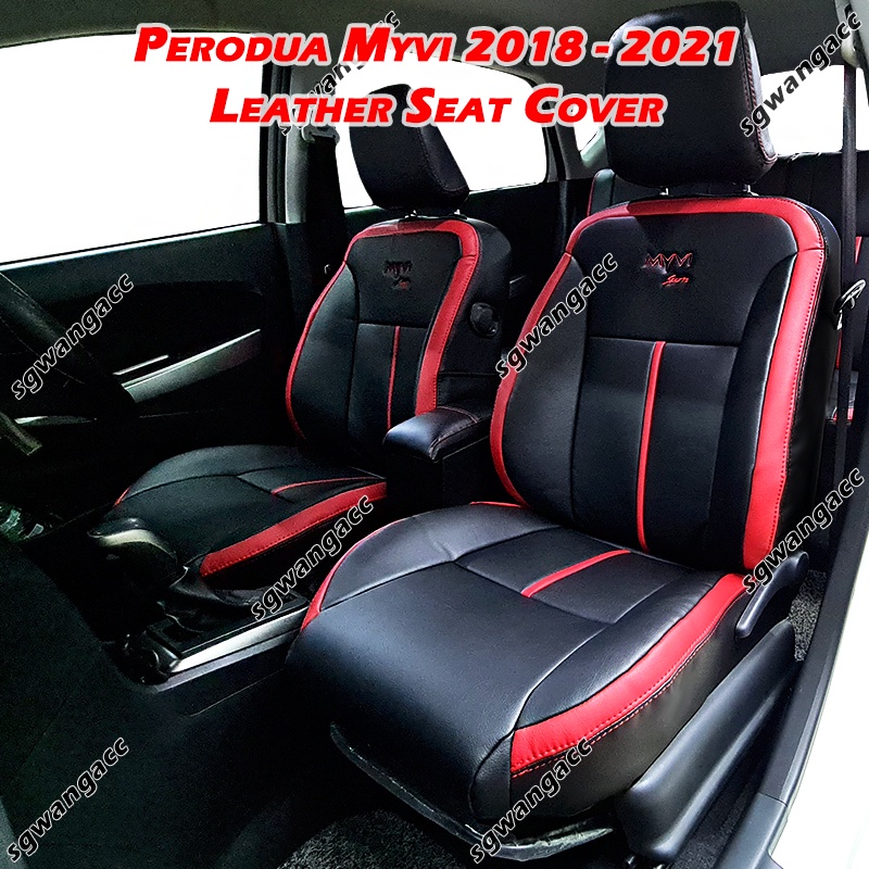 Semi Leather Pvc Car Seat Cover Perodua Myvi 2018 2021 Black Base Red Lining Sarung Kusyen Kereta Shopee Malaysia